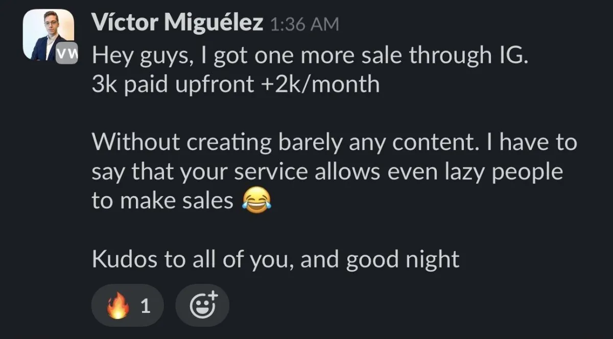 We started first by tweaking his outreach strategies. Which consisted of narrowing down his target audience then coming up with an ethical script to make sure that we were not sounding like robots when reaching out to potential clients. After we proved the concept of the new outreach we then started to scale his prospecting by getting him in front of more potential clients. This process can be very time-consuming so we automated it with virtual assistance (otherwise known as prospecting ninjas.)